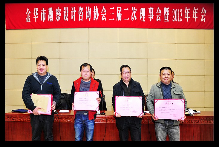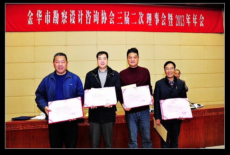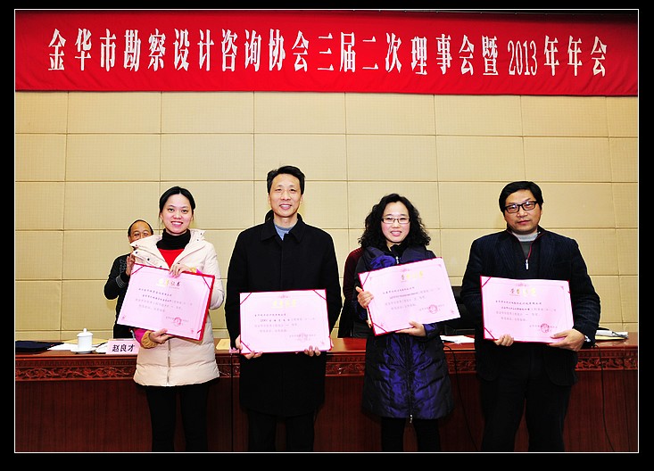 2014年1月10日下午,金華市勘察設計咨詢(xún)協(xié)會(huì )三屆二次理事會(huì )暨2013年會(huì )在市文化中心西區304會(huì )議室隆重召開(kāi)。會(huì )議由協(xié)會(huì )副理事長(cháng)兼秘書(shū)長(cháng)趙良才主持。全市50多家理事單位代表參加會(huì )議。市住房和城鄉建設局建筑節能與科技設計處許春福處長(cháng)出席會(huì )議。吳學(xué)敏理事長(cháng)作了協(xié)會(huì )2013年工作總結和2014年工作意見(jiàn)的報告。會(huì )議為獲得2012年度金華市優(yōu)秀勘察設計項目和個(gè)人頒獎。許春福處長(cháng)就“四庫一平臺”、勘察外業(yè)見(jiàn)證、施工圖審查、節能評估和審查、勘察設計單位綜合考評、培訓交流等工作做了布置。會(huì )議圓滿(mǎn)完成了各項議程。