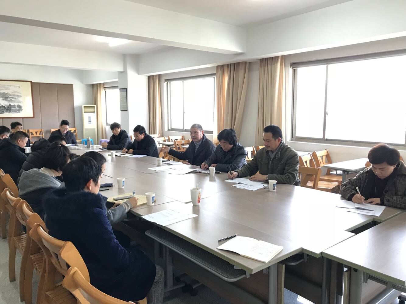 2018年12月24日下午,公司在11樓會議室召開了中層及以上管理人員會議。會議由公司副總經(jīng)理樓希龍主持。公司領(lǐng)導(dǎo)及二十余位中層管理人員參加會議。會議傳達了關(guān)于聘任王欣為金華市龍源建設(shè)工程施工圖審查中心主任及關(guān)于聘任葉肖為金華市建筑設(shè)計院有限公司辦公室副主任(主持工作)的決定。吳學(xué)敏總經(jīng)理就為什么調(diào)整龍源中心班子及設(shè)計公司辦公室班子、班子調(diào)整怎樣產(chǎn)生的等事項作了說明;并對兩位新調(diào)整人員提了要求;二位新提拔同志作了表態(tài)發(fā)言。會議還通報了近期重要工作。.jpg)