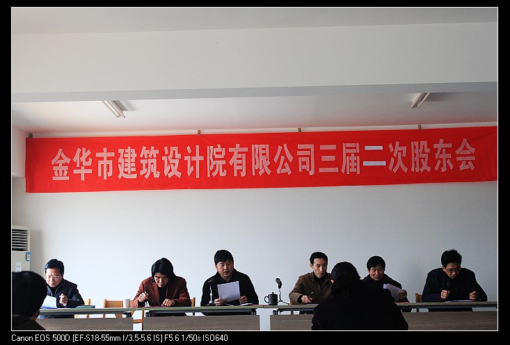 2011年3月26日,金華市建筑設計院有限公司第三屆二次股東會(huì )在公司十一樓會(huì )議室召開(kāi),會(huì )議對2010年度公司董事會(huì )報告、監事報告、財務(wù)報告等進(jìn)行了審議和表決。