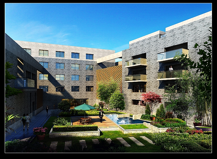院落的鏤空磚墻將園林建筑中漏景、借景等手法加以體現,使景觀(guān)相互滲透。