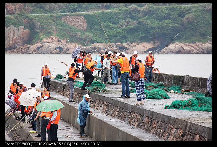 5月19日,在淅淅瀝瀝的小雨中,大家登上了去嵊泗的快艇,開(kāi)始了新一天的旅程。經(jīng)過(guò)了一小時(shí)的船程,我們到達了嵊泗列島本島,雨天加上略帶寒意的海風(fēng)并沒(méi)有降低大家的熱情,上午,乘小木船去釣魚(yú)點(diǎn)釣魚(yú),下午,乘車(chē)去了碧海金沙海灘。