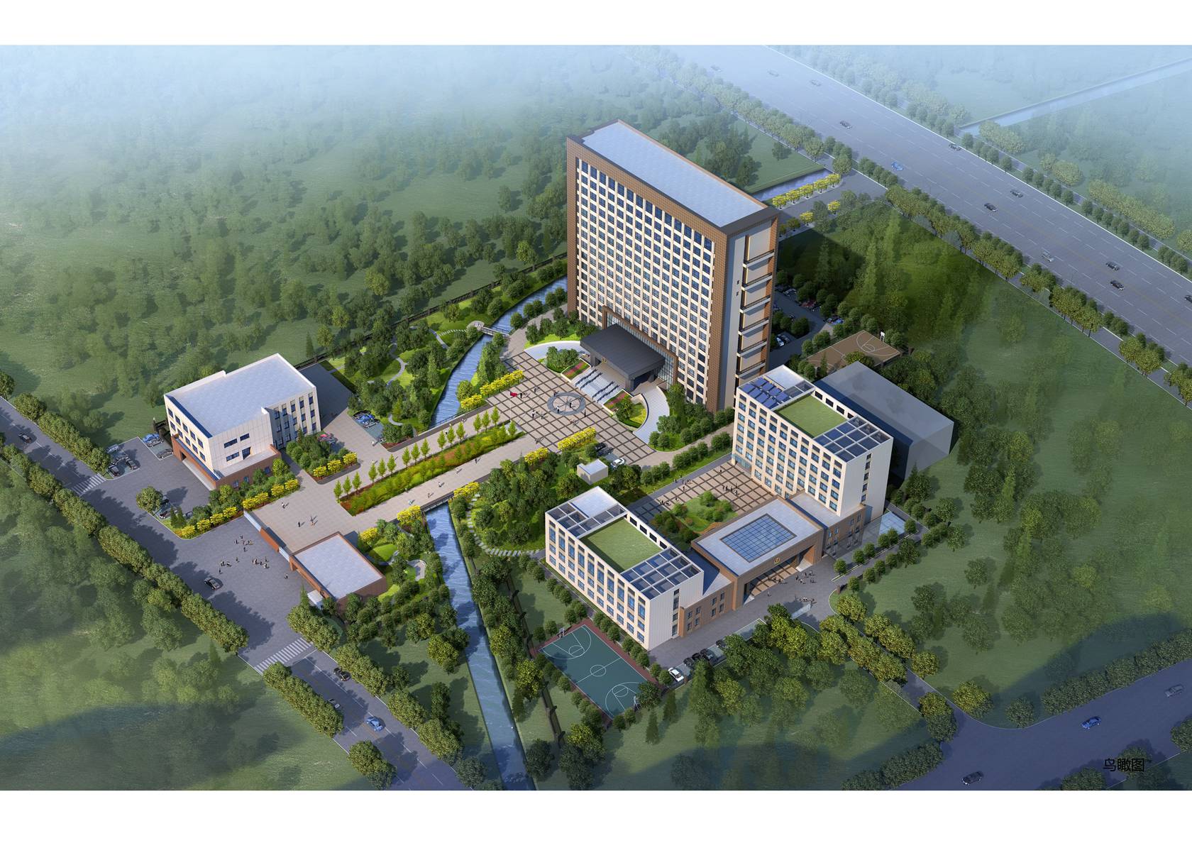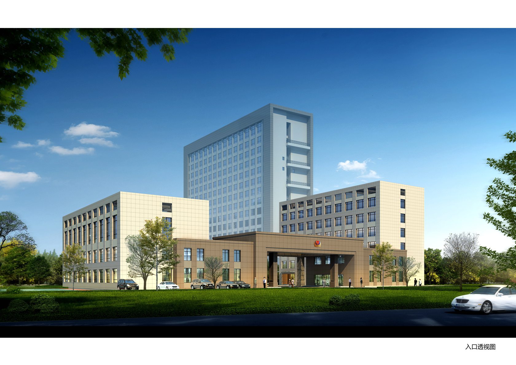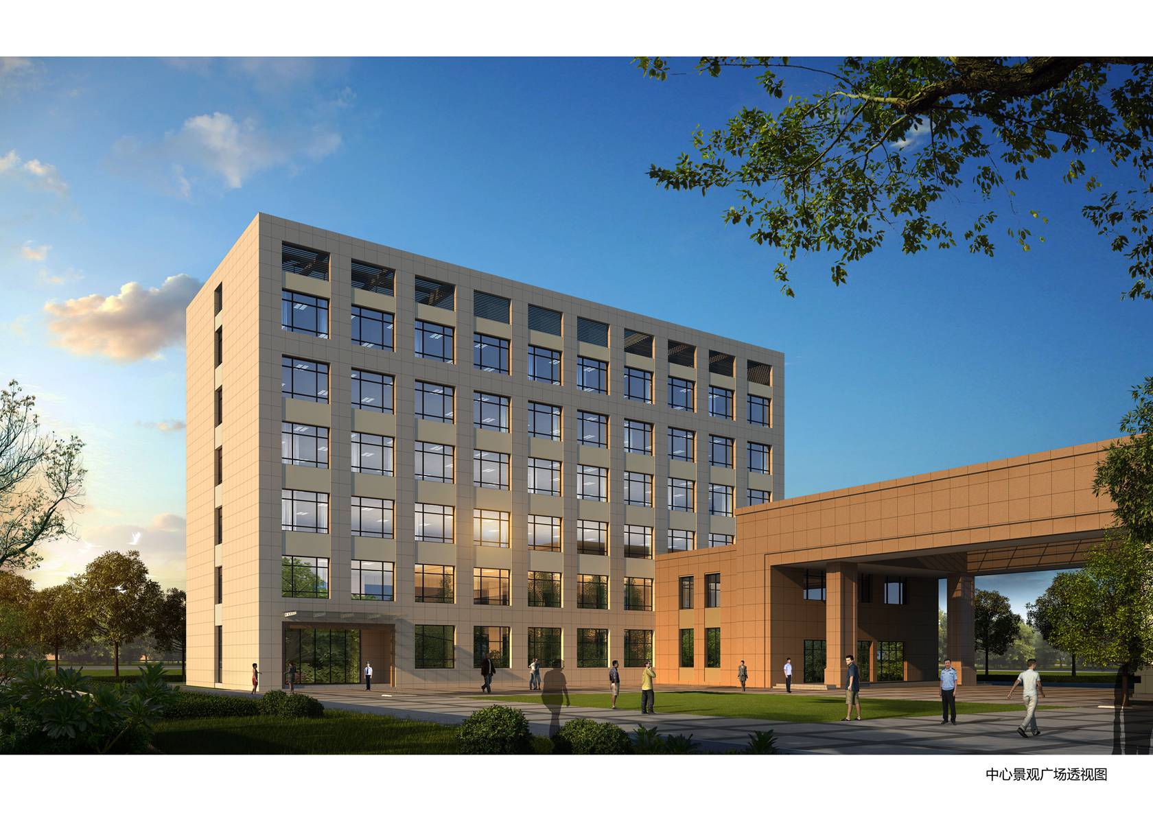 本案采用傳統的院落布局,兩棟南北向平行的主體建筑及一棟東西向裙房建筑圍合而成大面積的半開(kāi)放空間,既是中心景觀(guān)廣場(chǎng)又可作為平時(shí)室外訓練場(chǎng)地使用;使用功能相似或有內在聯(lián)系的建筑相對集中布置,用門(mén)廊加以聯(lián)系,形成相互關(guān)聯(lián)的群體結構。