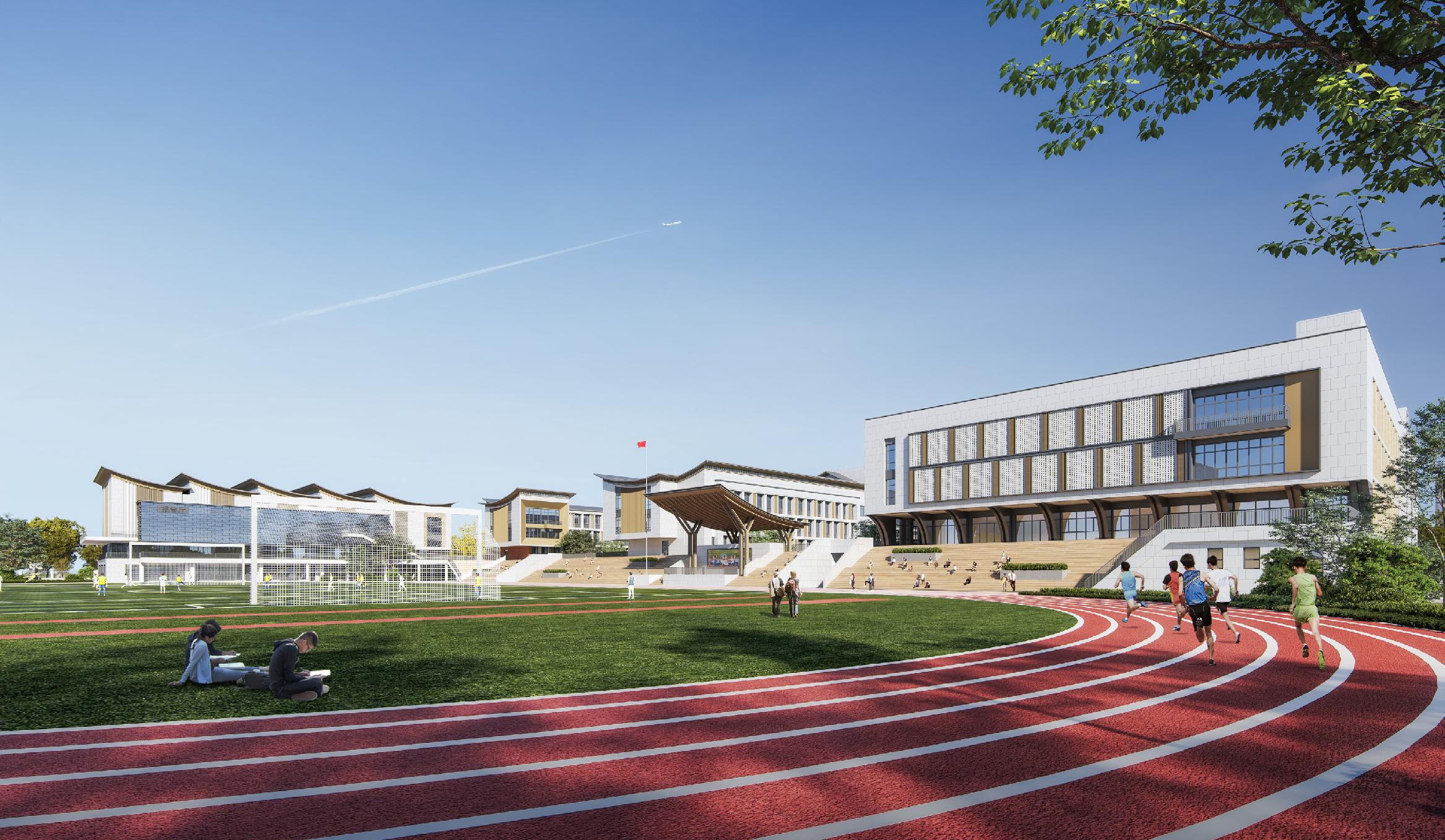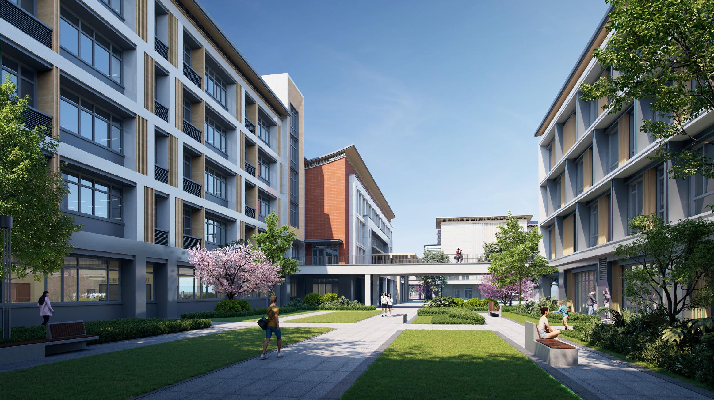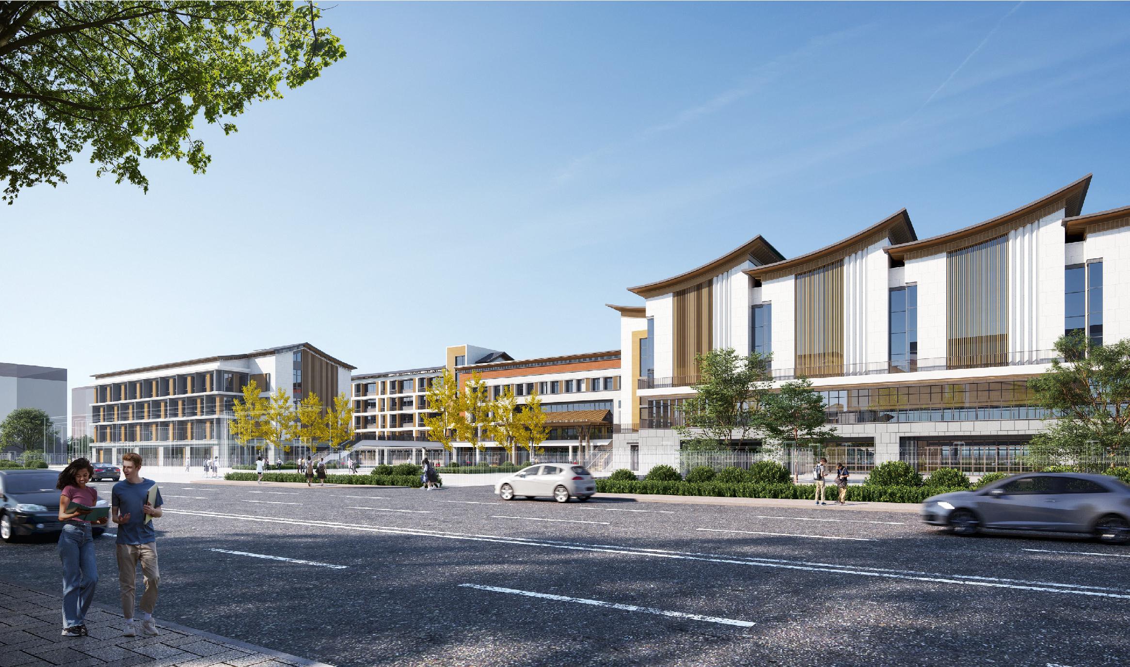 面積47456.04㎡,地下建筑面積16176.33㎡;容積率為0.85,建筑密度28.21%。辦學(xué)規模48個(gè)班,能容納學(xué)生2400 人,建設內容包括:1#樓